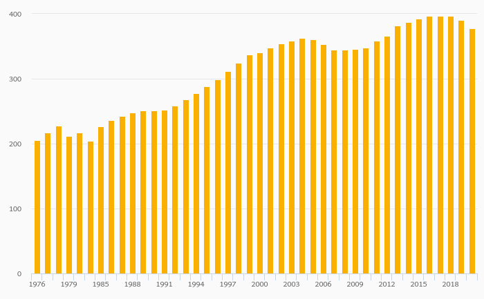 Number of Teachers (Primary Education) fell 3.30% to 378 '000 in Vietnam in 2020