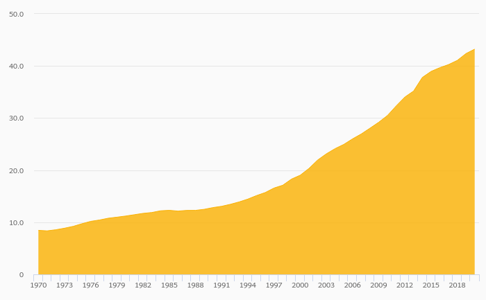 Gross School Enrollment, Female (Tertiary Education) rose 2.01% to 43.2% in the World in 2020