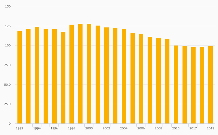 Gross School Enrollment, Female (Primary Education) rose 0.962% to 99.3% in Maldives in 2019