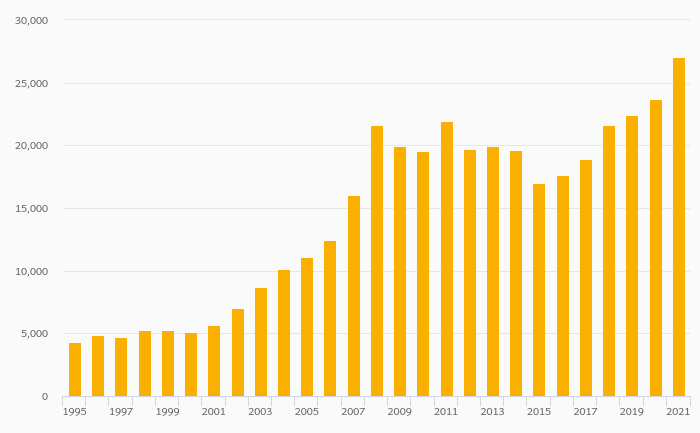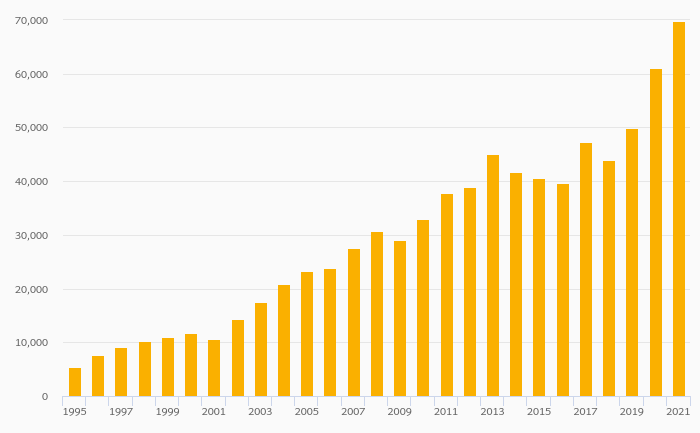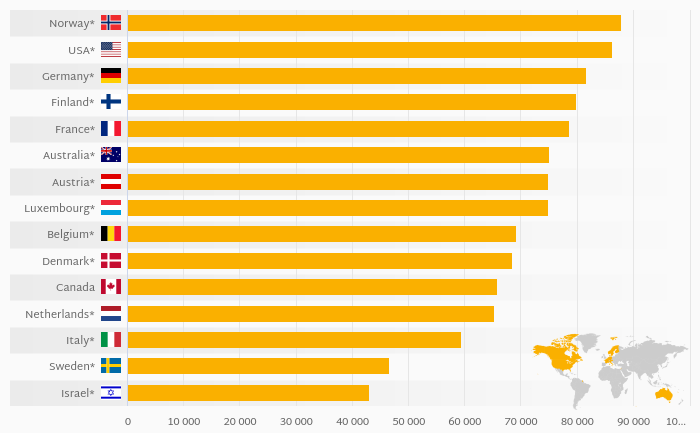 Households' Pension Fund Assets Per Capita (USD) rose 14.2% to USD 69,723 in Sweden in 2021