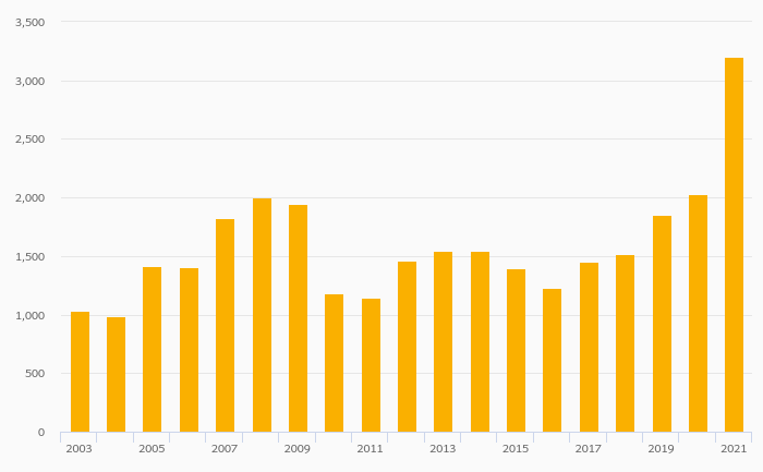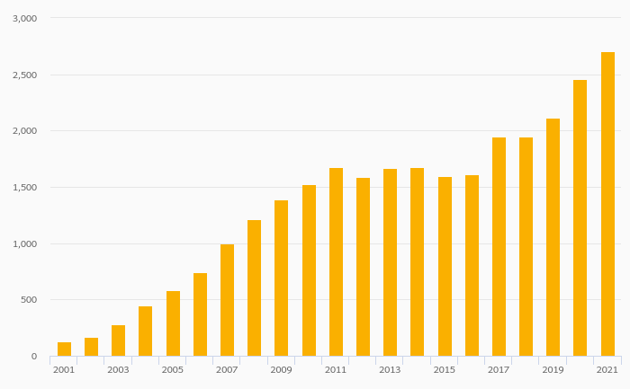 Households' Pension Fund Assets Per Capita (USD) rose 35.5% to USD 2,617 in Lithuania in 2021
