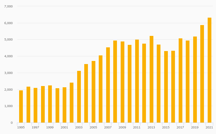 Households' Pension Fund Assets Per Capita (USD) rose 7.44% to USD 6,327 in Italy in 2021