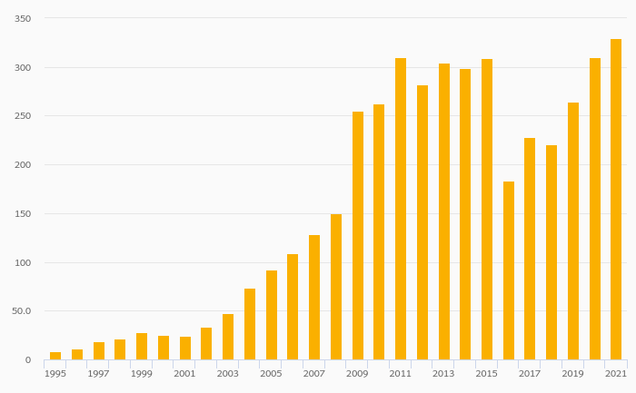 Households' Pension Fund Assets Per Capita (USD) rose 6.35% to USD 330 in Greece in 2021