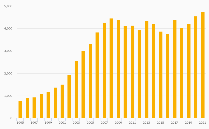 Households' Pension Fund Assets Per Capita (USD) rose 15.5% to USD 4,008 in Latvia in 2021