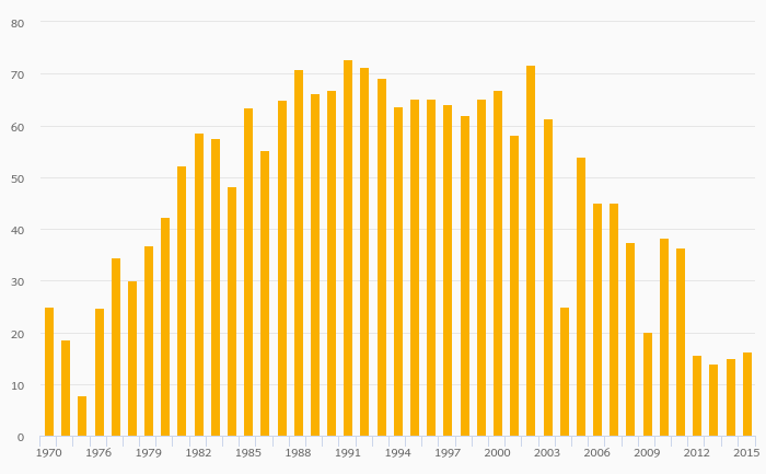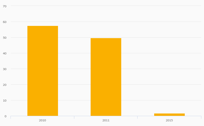 Tin (Mine) Production fell 47.4% to 10.0 tonnes in India in 2015