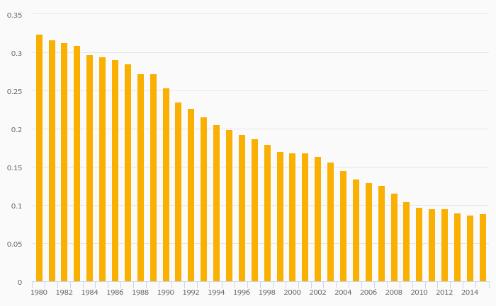 Coal Consumption (As % of Worldwide Consumption) rose 1.89% to 0.089% in the European Union in 2015