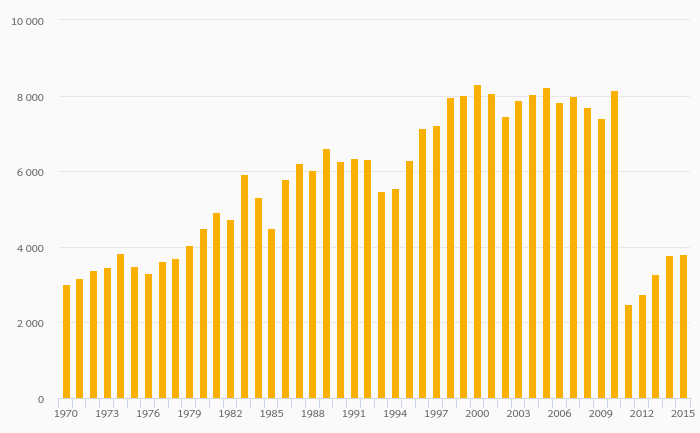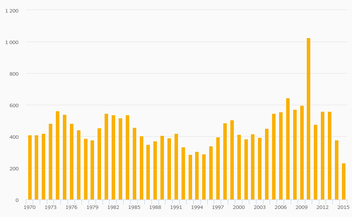 Zinc (Slab) Production fell 1.17% to 169 kt in France in 2015