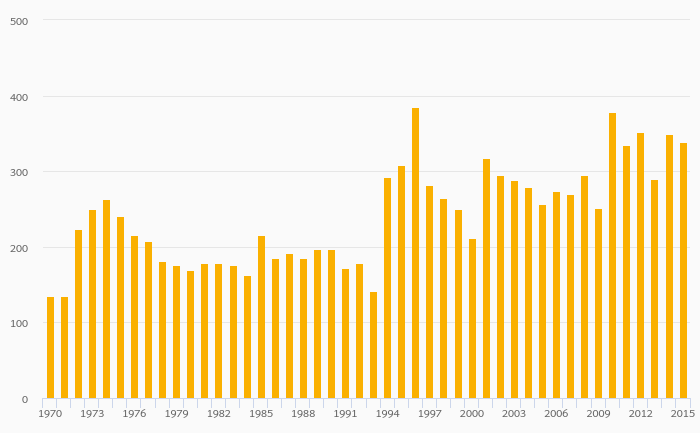 Hard Coal Production fell 14.4% to 288,388 kt in Indonesia in 2015