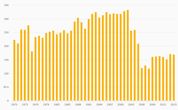 Copper (Smelter) Production fell 3.26% to 338 kt in Germany in 2015