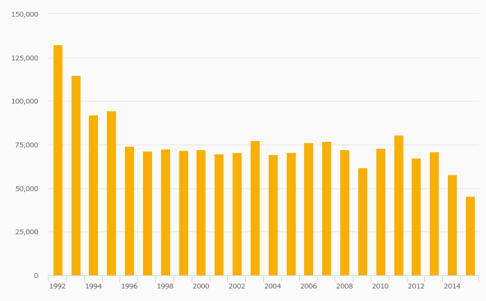 Total Coal Consumption fell 21.3% to 45,503 kt in Ukraine in 2015