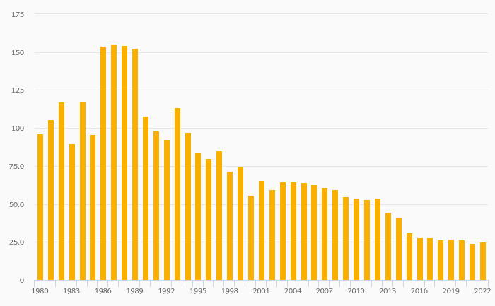 Energy Use (kg of Oil Equivalent) Per USD 1,000 of GDP rose 5.02% to 25.2 kg in Malta in 2022