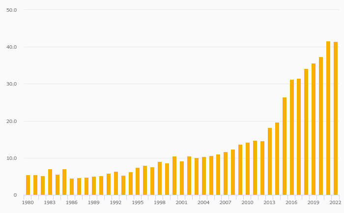 GDP Per Unit of Energy Use (PPP $ Per kg of Oil Equivalent) fell 0.321% to USD 41.5 in Malta in 2022