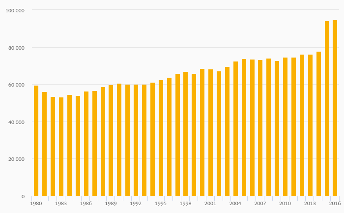 Crude Oil Supply rose 0.438% to 94,625 '000 bpd in the World in 2016