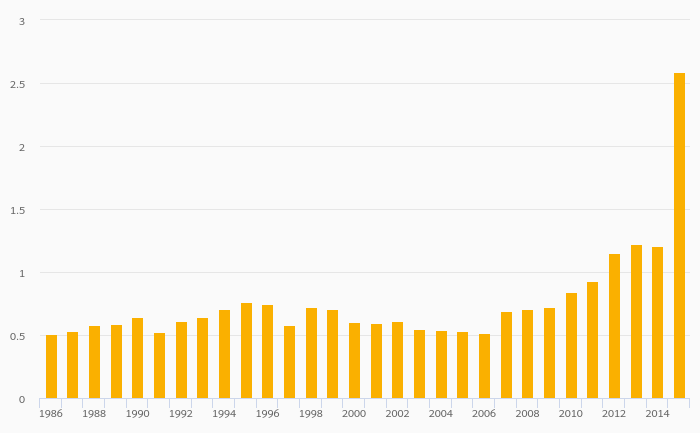 Distillate Fuel Oil Consumption (As % of Worldwide Consumption) rose 115% to 2.59% in Iraq in 2015