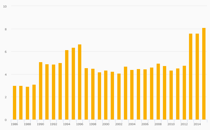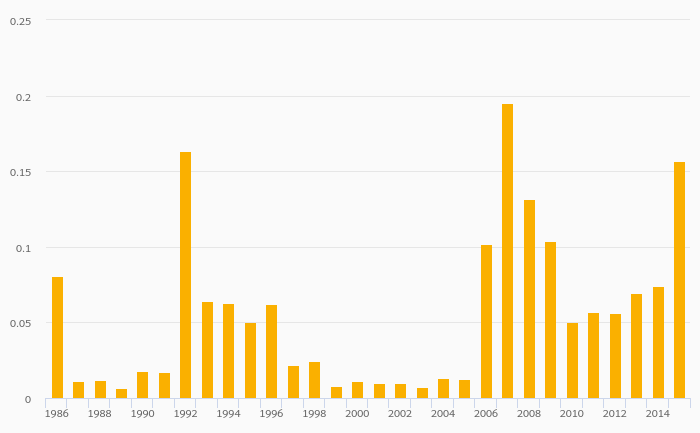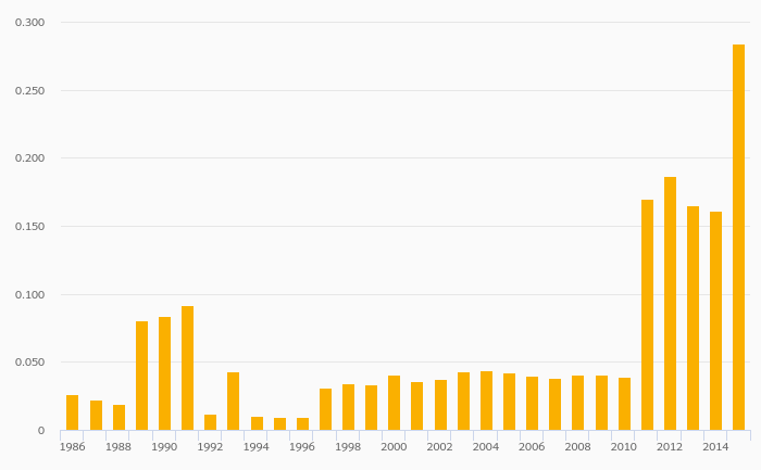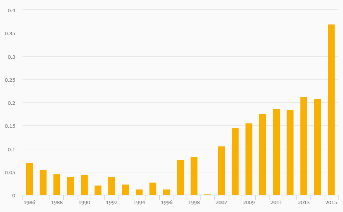 Jet Fuel Consumption (As % of Worldwide Consumption) rose 77.4% to 0.369% in Panama in 2015
