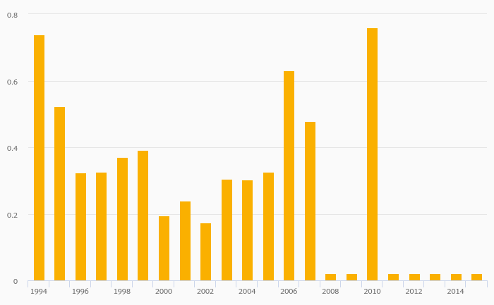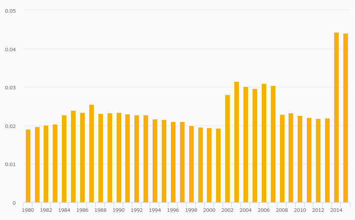 Jet Fuel Consumption rose 0% to 0.022 '000 bpd in Eritrea in 2015