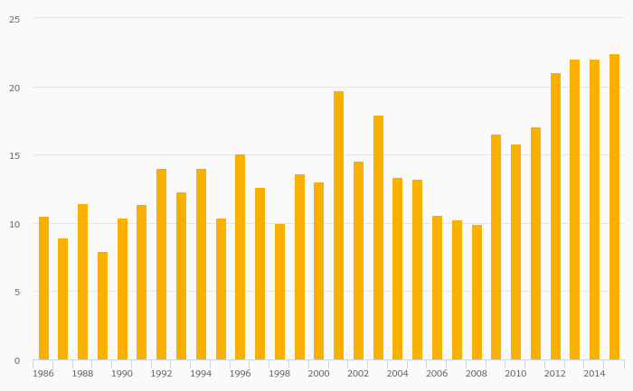 Jet Fuel Consumption rose 1.91% to 22.4 '000 bpd in Colombia in 2015