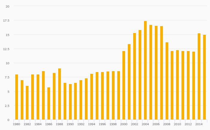 Total Petroleum Consumption rose 1.35% to 12,889 '000 bpd in the European Union in 2015
