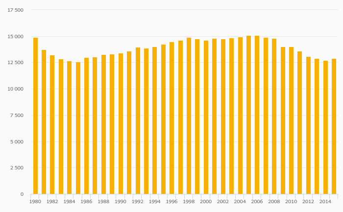 Total Petroleum Consumption fell 1.52% to 15.0 '000 bpd in Madagascar in 2015