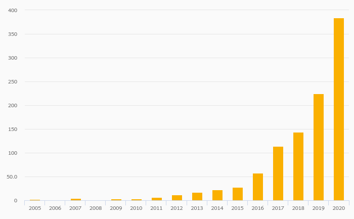 Secure Internet Servers rose 71.4% to 384 in Laos in 2020
