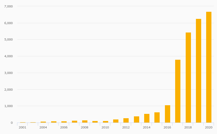 Secure Internet Servers rose 6.63% to 6,677 in Uruguay in 2020