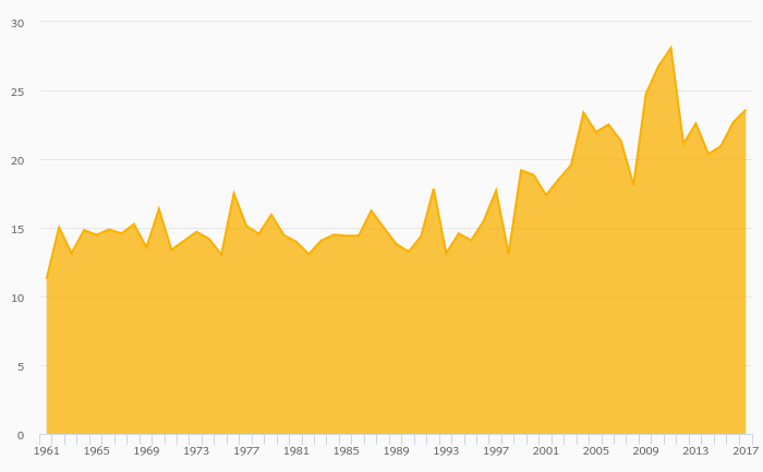 Fruit Consumption Per Capita rose 3.94% to 23.6 kg in Denmark in 2017