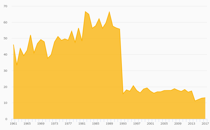 Fruit Consumption Per Capita rose 1.93% to 13.1 kg in the Czech Republic in 2017