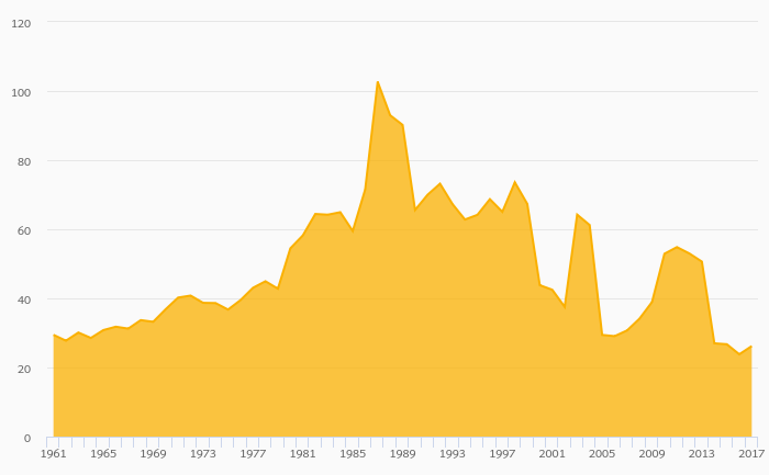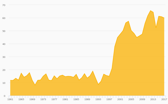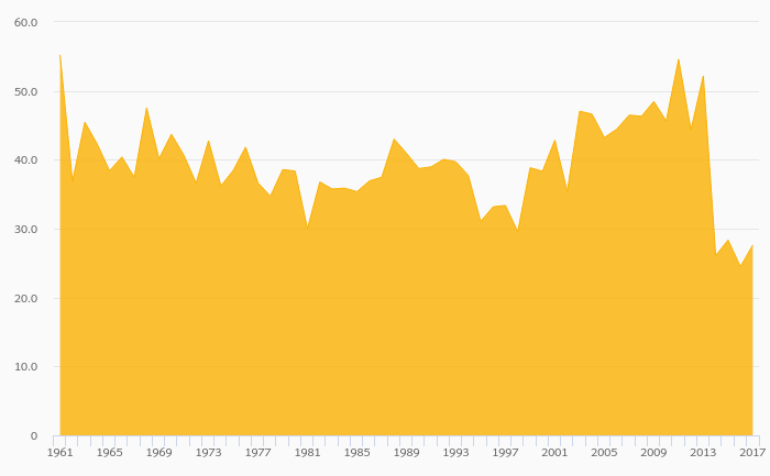 Fruit Consumption Per Capita fell 1.67% to 59.1 kg in Cuba in 2017