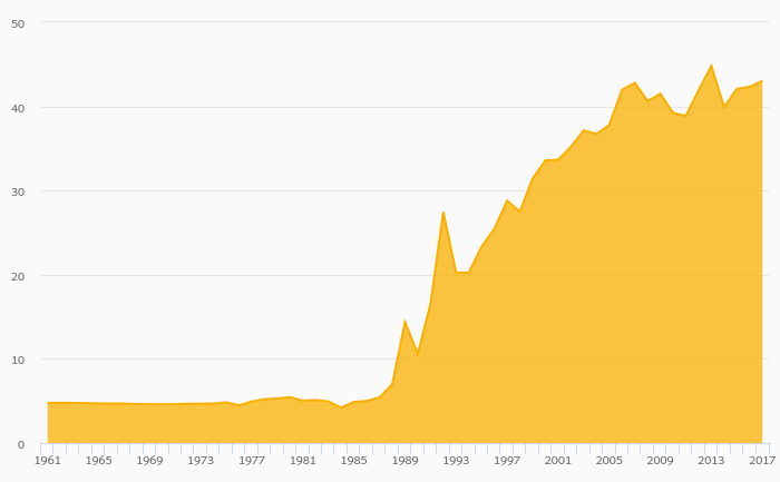 Fruit Consumption Per Capita rose 1.71% to 43.0 kg in Colombia in 2017