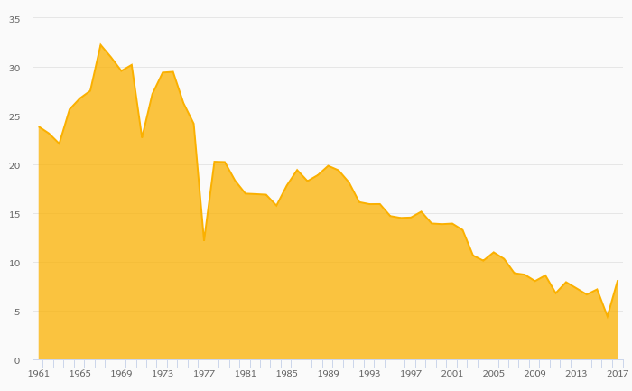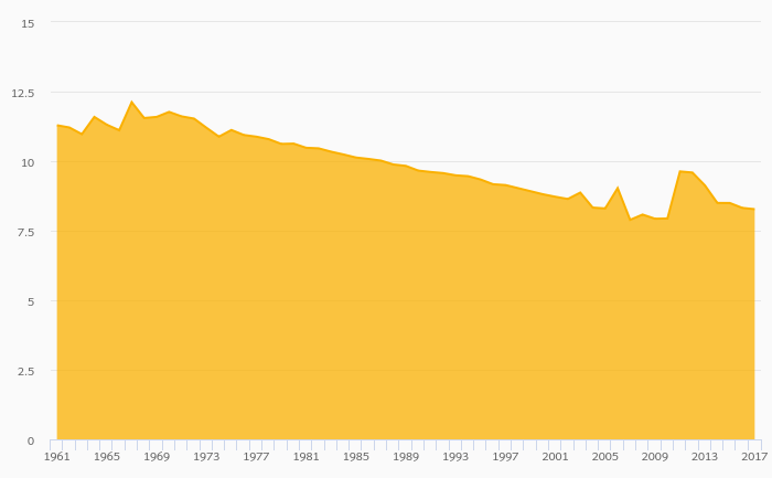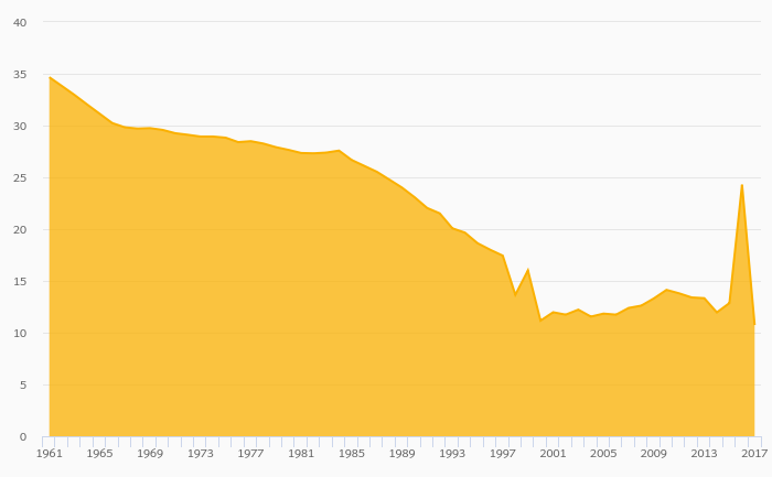 Fruit Consumption Per Capita fell 55.8% to 10.7 kg in Benin in 2017