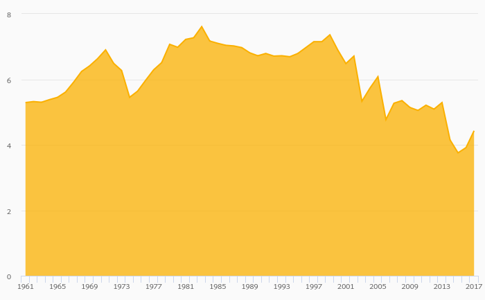 Fruit Consumption Per Capita rose 13.1% to 4.43 kg in Burkina Faso in 2017