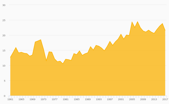 Fruit Consumption Per Capita fell 9.69% to 21.5 kg in Australia in 2017