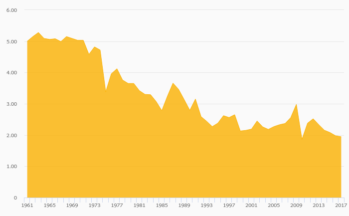 Fruit Consumption Per Capita rose 10.6% to 2.15 kg in Angola in 2017