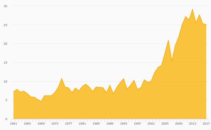 Fruit Consumption Per Capita rose 9.95% to 25.3 kg in Bahamas in 2017