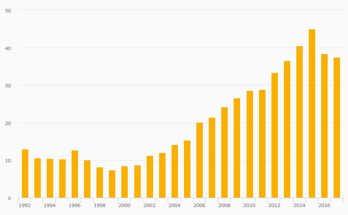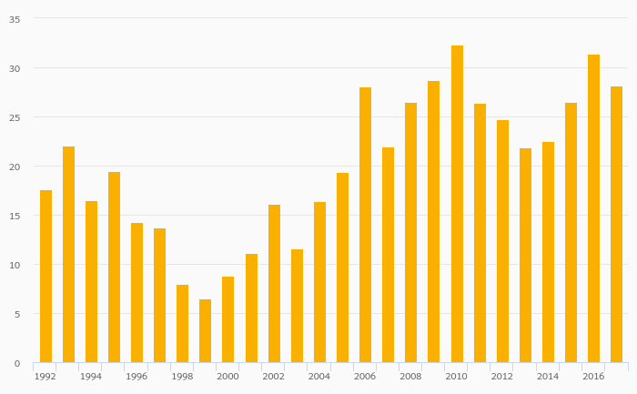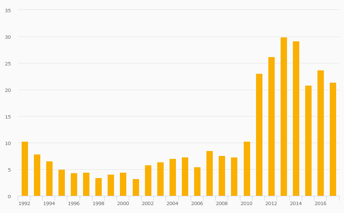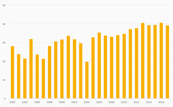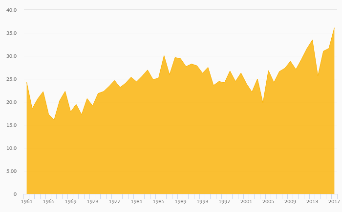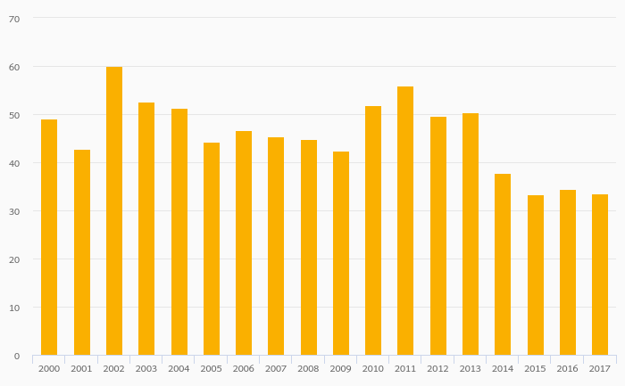 Fruit Consumption Per Capita rose 11.2% to 36.0 kg in Turkey in 2017