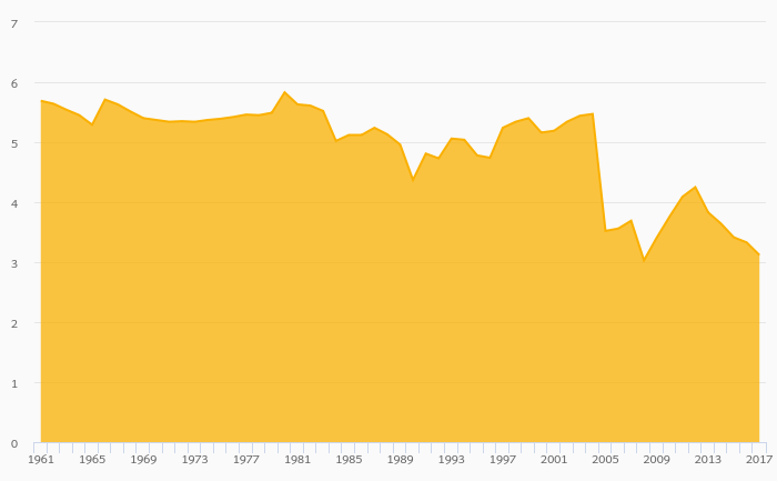 Fruit Consumption Per Capita fell 6.36% to 3.08 kg in Togo in 2017