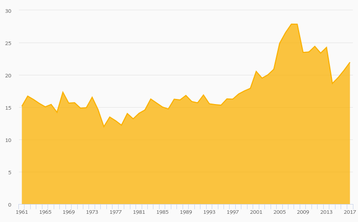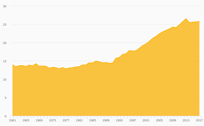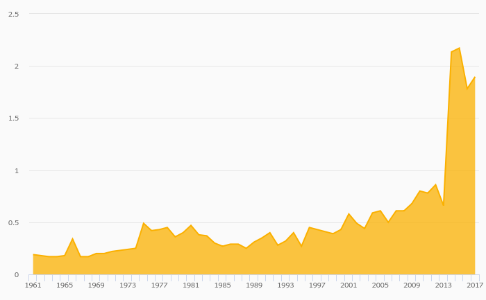 Fruit Consumption Per Capita rose 0.425% to 25.7 kg in the World in 2017