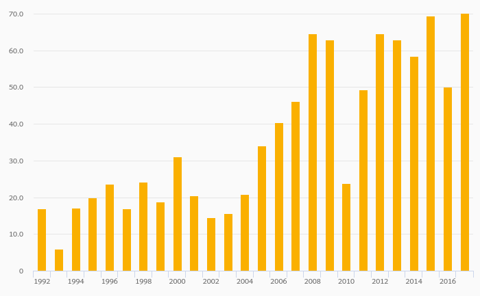 Fruit Consumption Per Capita rose 42.2% to 71.0 kg in Armenia in 2017