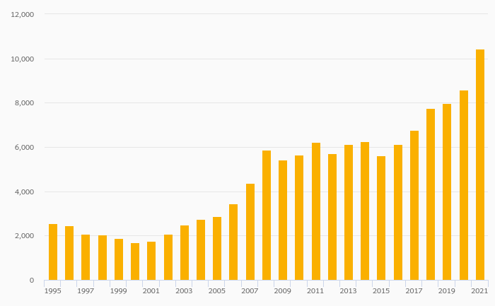 Households' Land Assets Per Capita (USD) rose 21.6% to USD 10,450 in Czechia in 2021