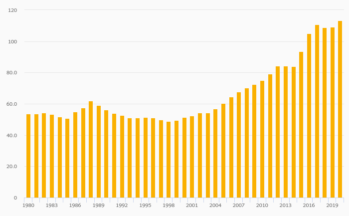 Households' Land Assets (As % of GDP) rose 3.91% to 113% in Norway in 2020