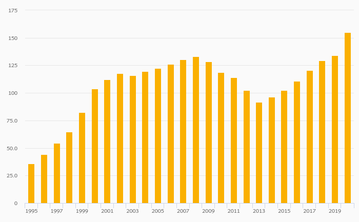 Households' Land Assets (As % of GDP) rose 15.6% to 155% in Netherlands in 2020