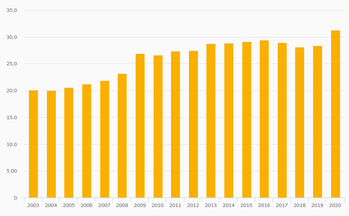 Households' Land Assets (As % of GDP) rose 10.3% to 31.3% in Mexico in 2020