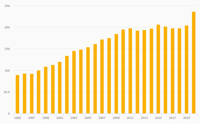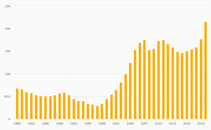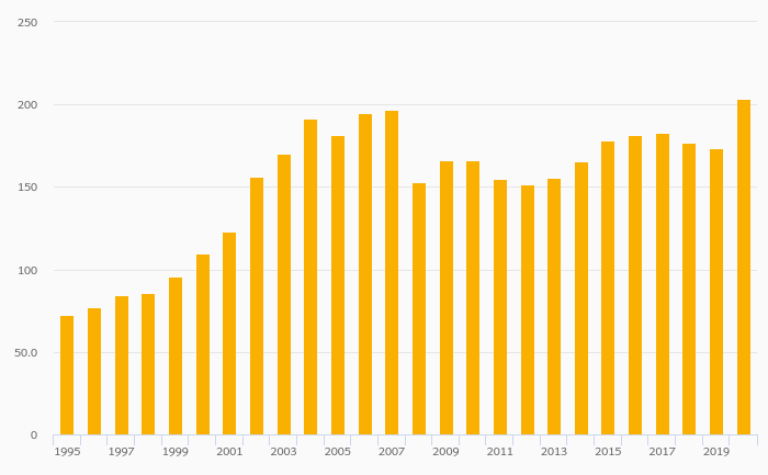 Households' Land Assets (As % of GDP) rose 17.4% to 204% in the United Kingdom in 2020