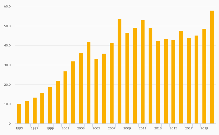 Households' Land Assets (As % of GDP) rose 19.0% to 57.9% in Slovakia in 2020