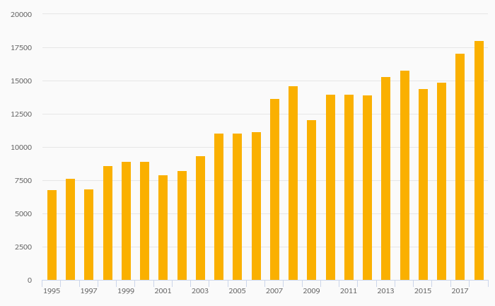 International Tourism, Expenditure (USD) rose 5.86% to USD 18,056 mil in Sweden in 2018