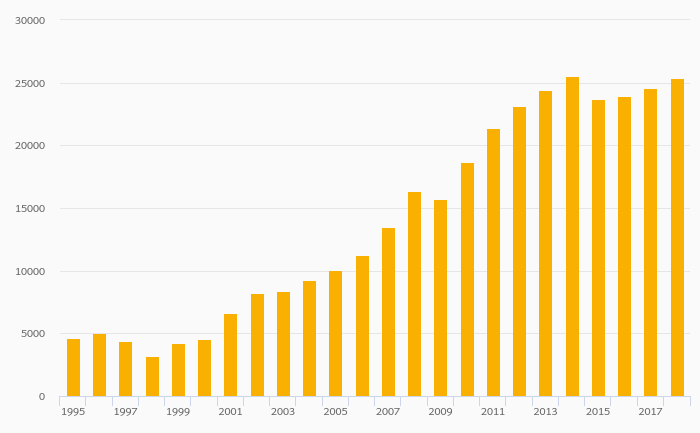 International Tourism, Expenditure (USD) rose 3.08% to USD 25,346 mil in Singapore in 2018