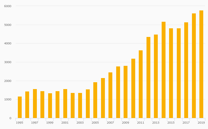 International Tourism, Expenditure (USD) rose 2.61% to USD 5,770 mil in Colombia in 2019
