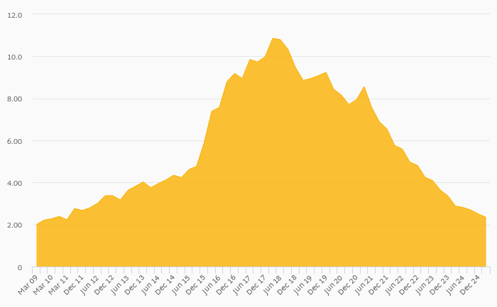 Non-Performing Loans (As % of Total Loans) fell 18.4% yoy to 2.34% in India in 1Q2025