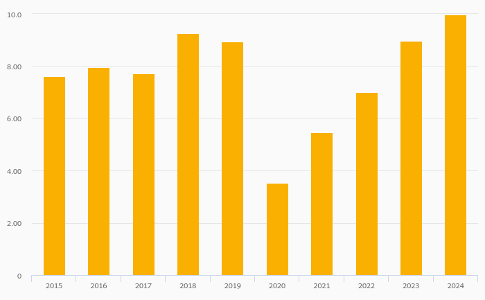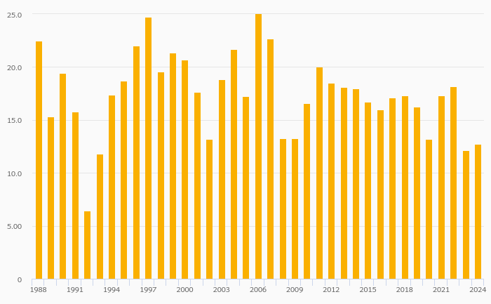 Bank Pre-Tax Return on Equity (Pre-Tax ROE) rose 5.05% to 12.7% in Canada in 2024