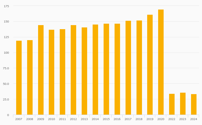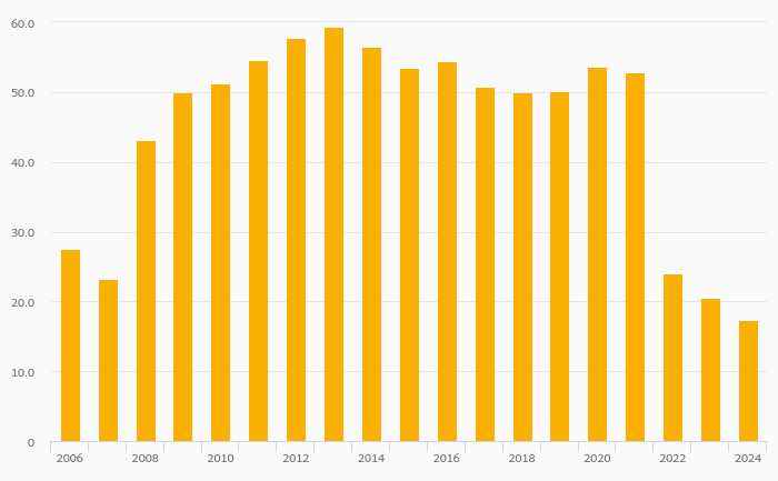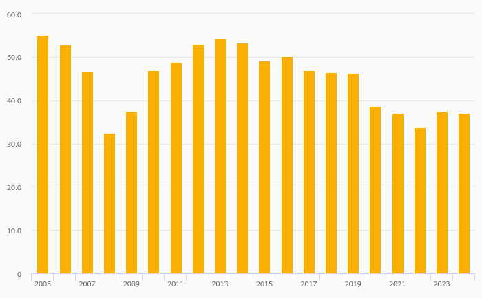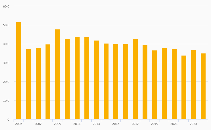 Bank Liquid Assets (As % of Short-Term Liabilities) fell 6.15% to 33.5% in Germany in 2024